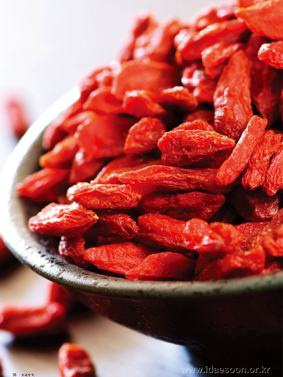 구기자는 약재로 흔히 활용되며 새콤하고 여러가지 맛을 내는 특유의 매력으로 많이 사랑받는 식품입니다.유명스타 마돈나와 미란다 커 등 동안피부 유지와 건강관리를 위해 마신다는 이야기로 유명해진 구기자에는 베타인, 제아잔틴과 더불어 비타민 A, C가 풍부하게 포함되어 있어 몸의 면역력을 높이고 피로 해소 촉진에 좋고, 우리나라에서 뿐아니라 할리우드 스타들에게도 많습니다.